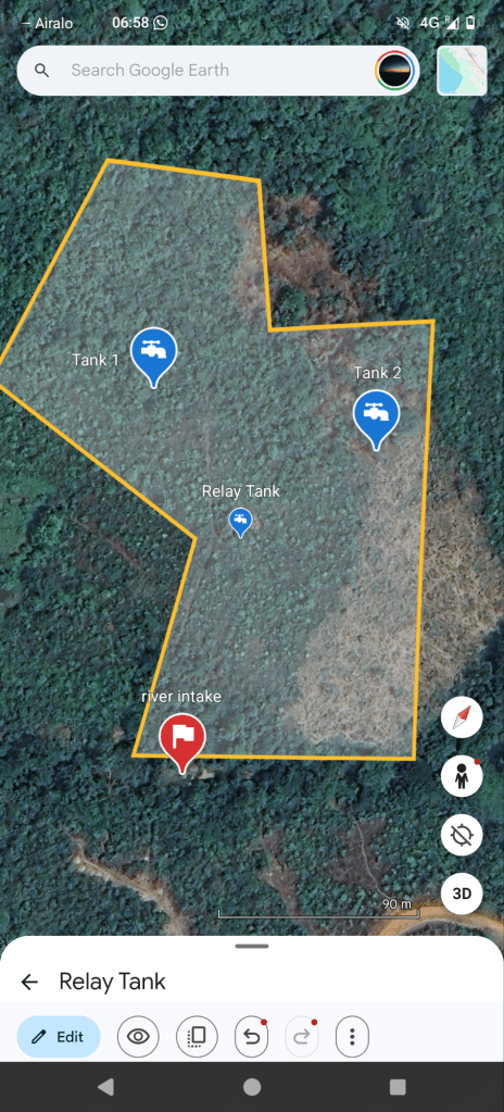 Rather than forcing a single long lift, we’re now planning a revised layout. This includes a third water tank at a lower elevation to act as a relay between the river and the two upper tanks, along with planning the concrete pad placement. The aim is to make the system realistic to build and run with locally available equipment.